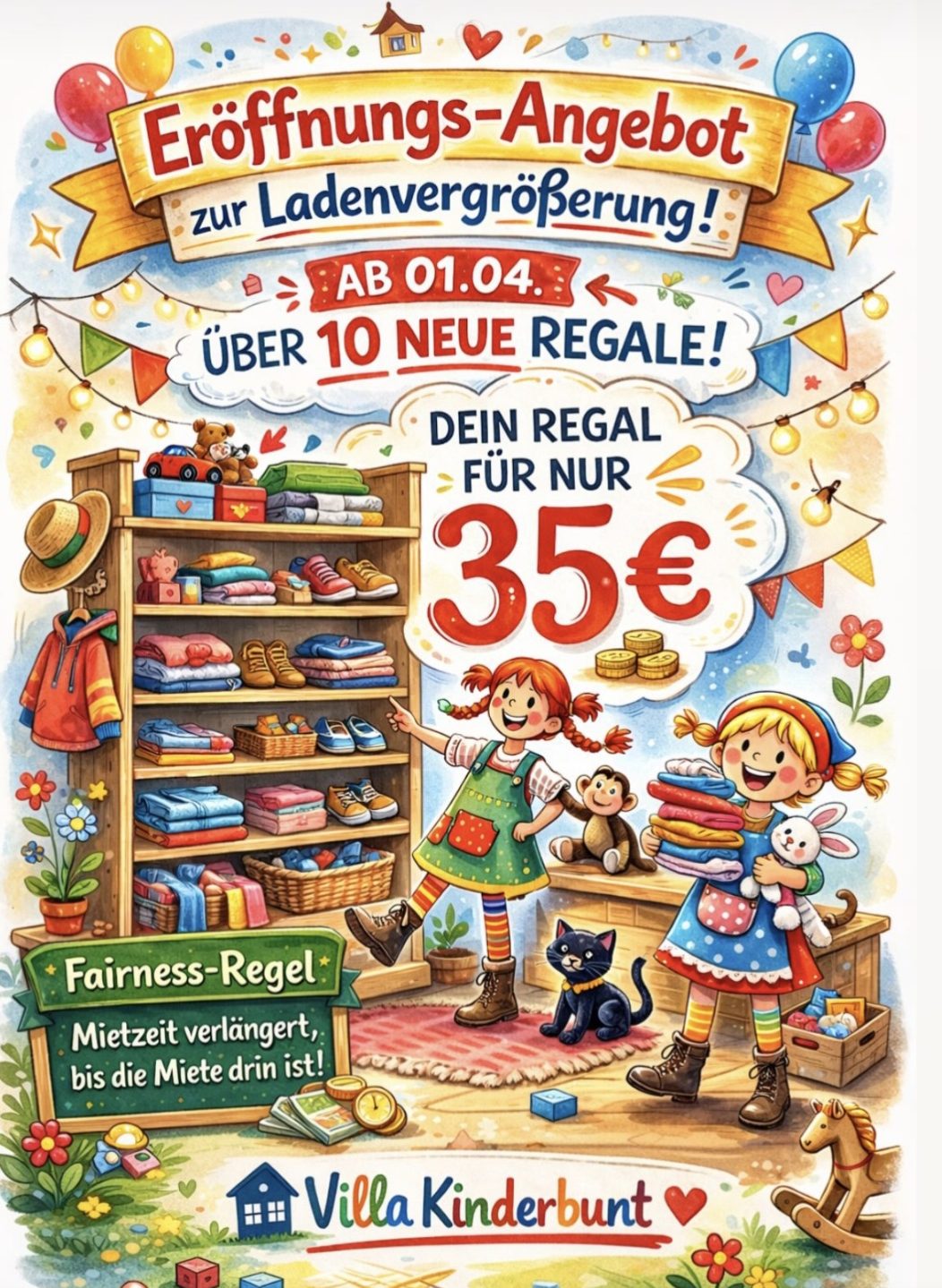 Im Regal für den Verkauf von Kinder- und Babykleidung in unserem Secondhandladen finden Sie eine sorgfältig ausgewählte Auswahl an hochwertigen und gut erhaltenen Kleidungsstücken. Unser Regal bietet eine Vielzahl von Größen und Stilen, sodass für jedes Kind etwas Passendes dabei ist. Besuchen Sie uns und stöbern Sie durch unser abwechslungsreiches Sortiment an Secondhand-Kinder- und Babykleidung!
